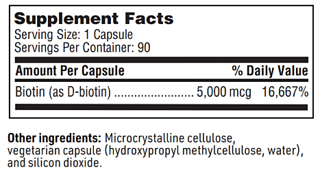 | Биотин (в форме D-биотина) | 5,000 mcg | 16,667% |
