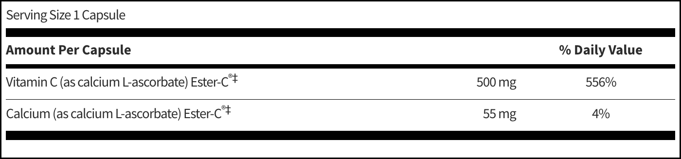 | Витамин C (в виде кальция L-аскорбата) Ester-C®‡ | 500 mg | 556% |