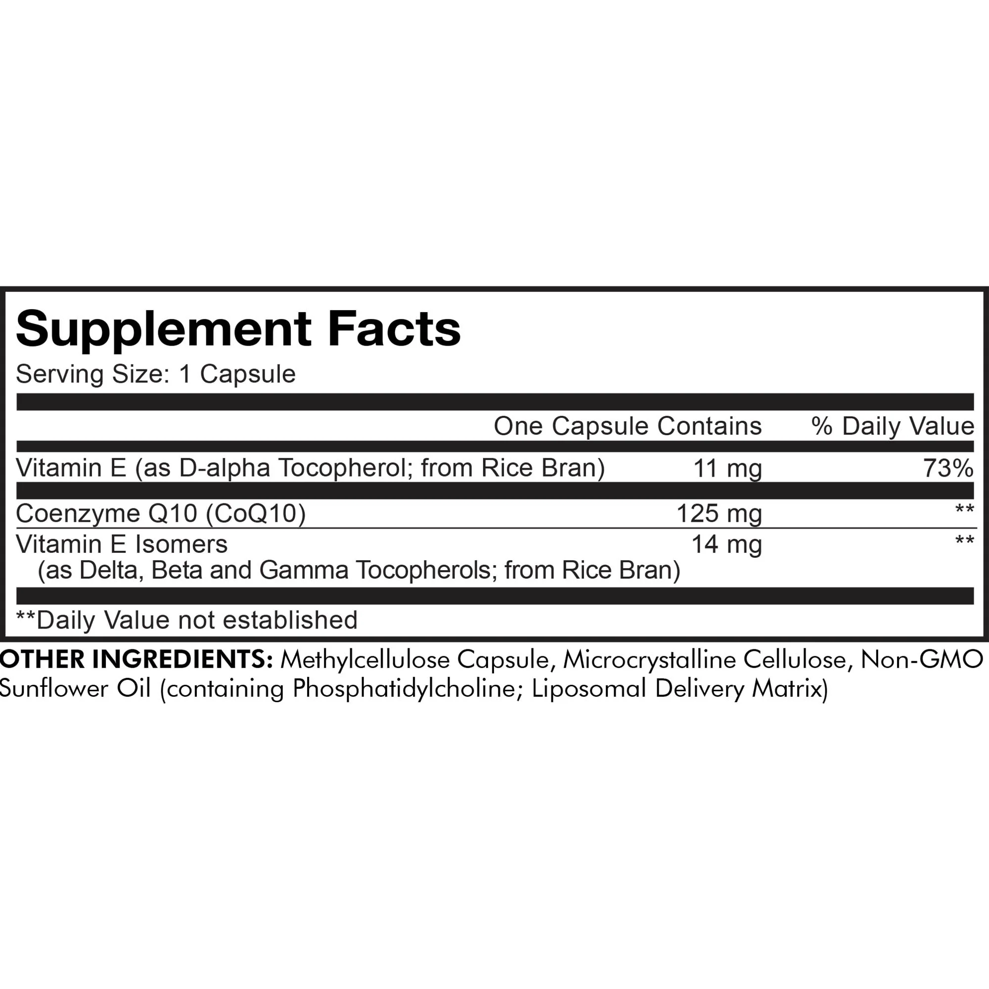 Коэнзим Q10 играет важную роль в клеточной энергетике и особенно необходим тканям с высоким энергопотреблением, включая сердце. Витамин E и его изомеры обеспечивают дополнительную антиоксидантную поддержку, помогая защищать клетки от окислительного стресса.