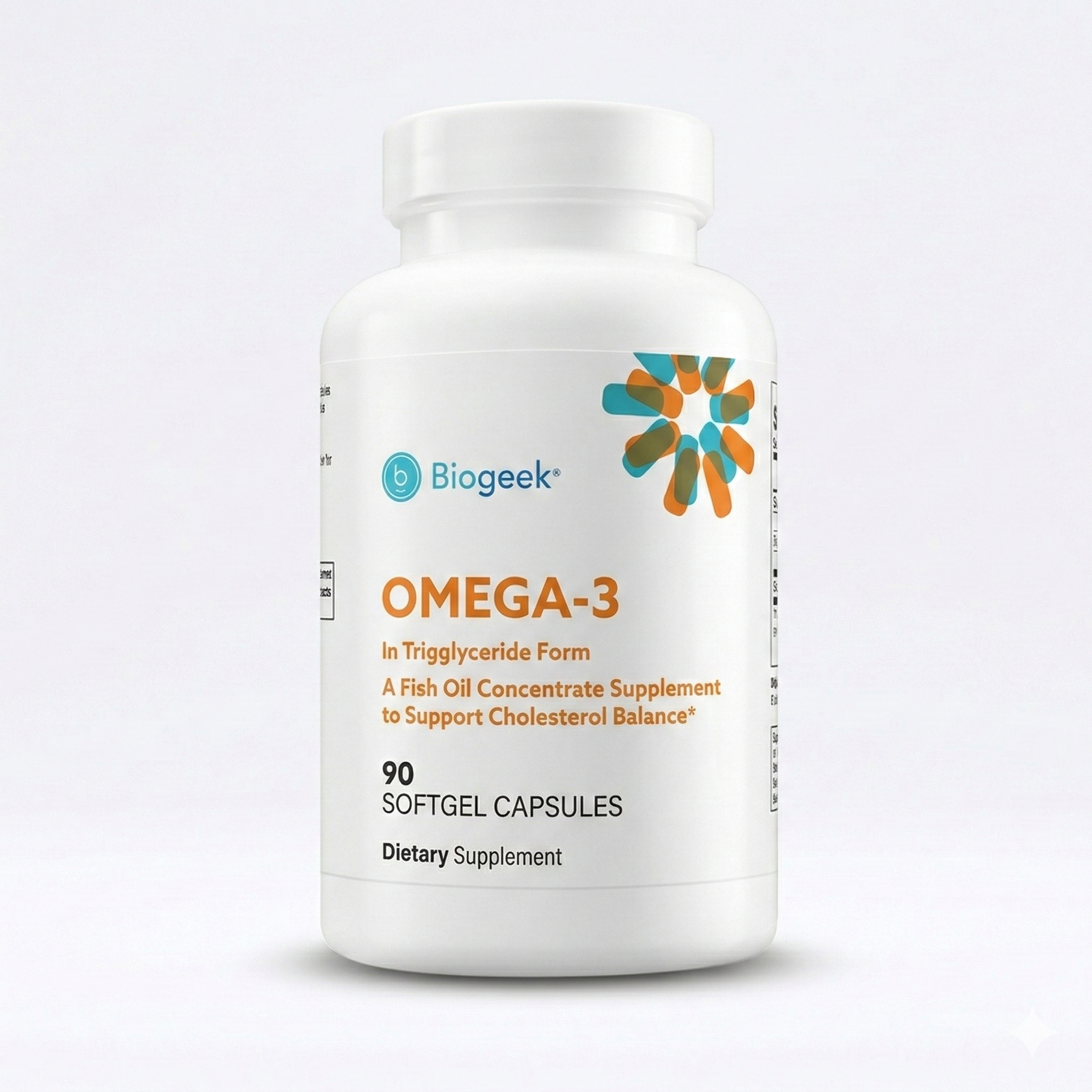 Omega-3 Fish Oil 1000 mg от Biogeek - это концентрированный источник омега-3 жирных кислот в натуральной форме триглицеридов, что способствует лучшему усвоению.